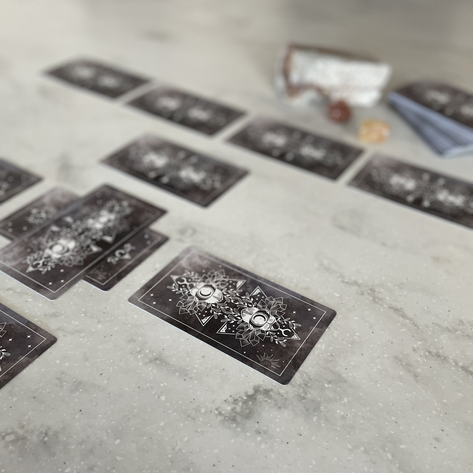 - 2.75" x 4.75" standard tarot size cards (70mm x 120mm)